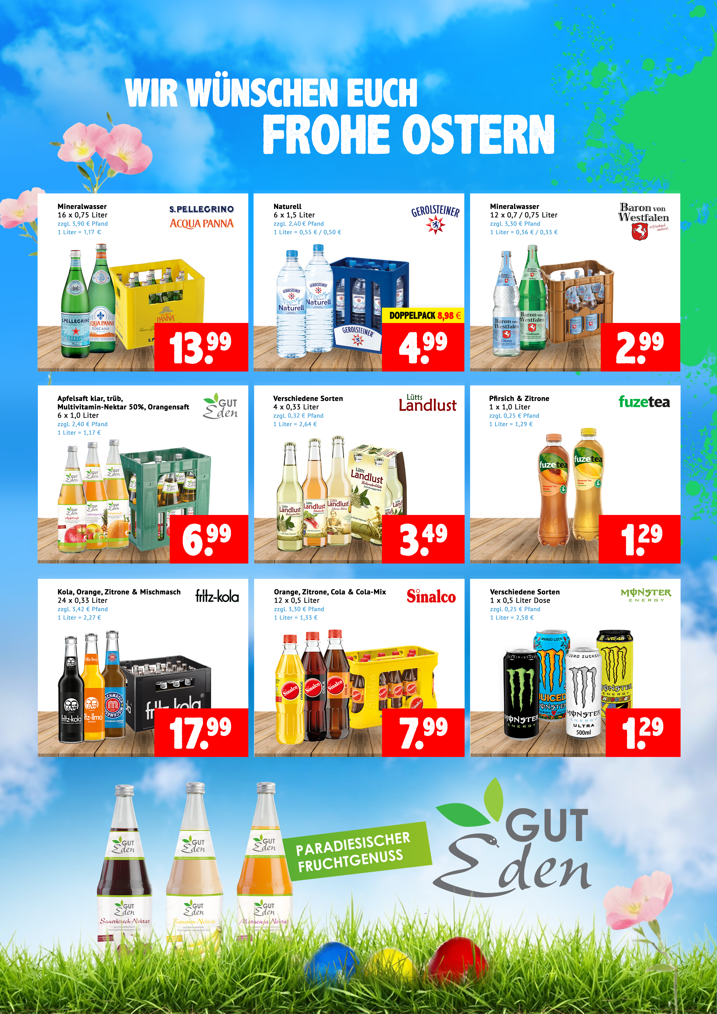 Passend zum Osterwochenende haben wir eine sehr große Auswahl an Getränke für Sie.