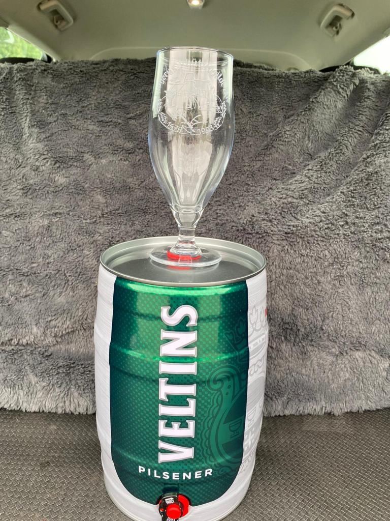 Da das Schützenfest nicht stattfinden konnte, haben alle Mitglieder ein Fässchen Veltins und ein individuelles Glas bekommen.