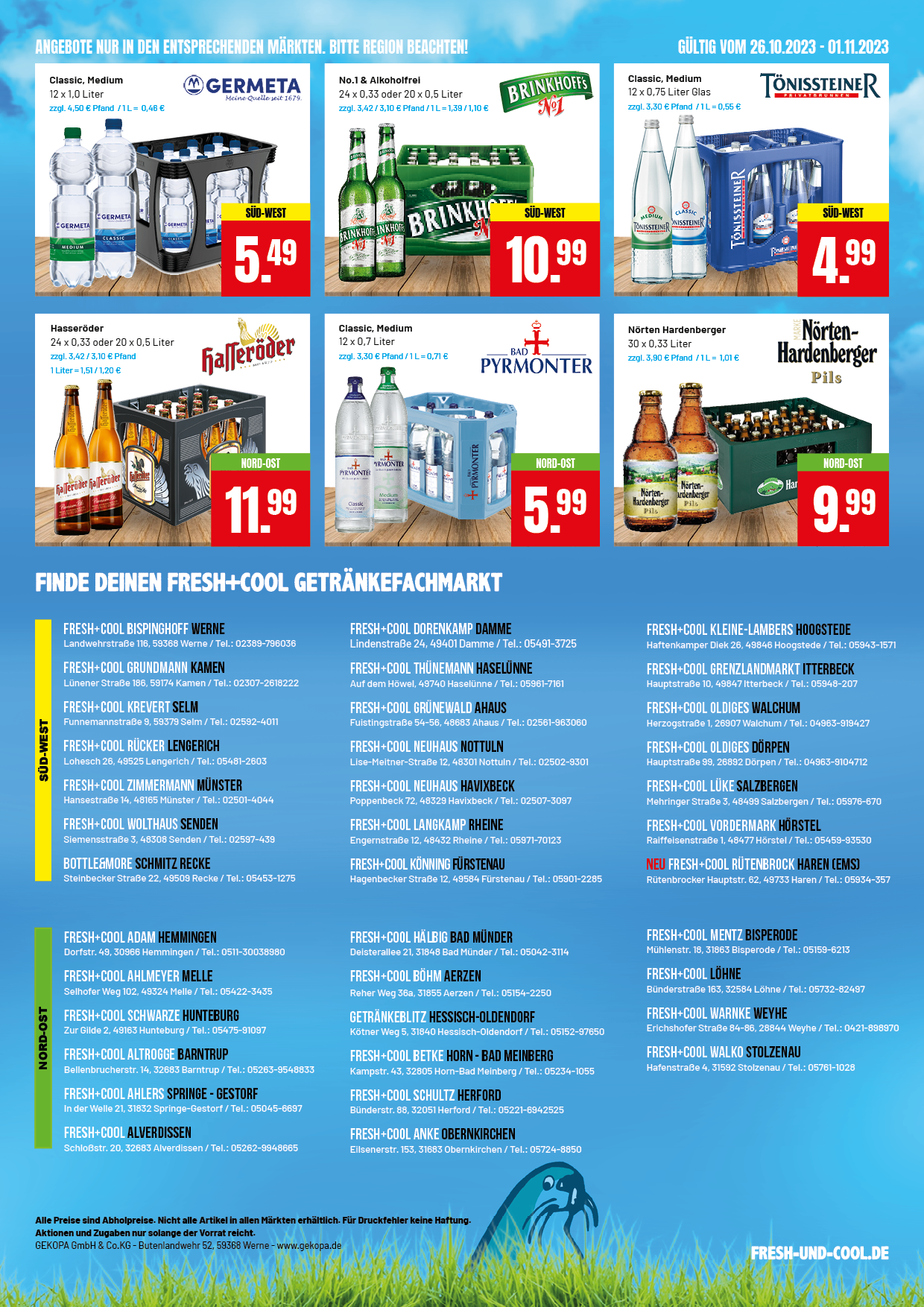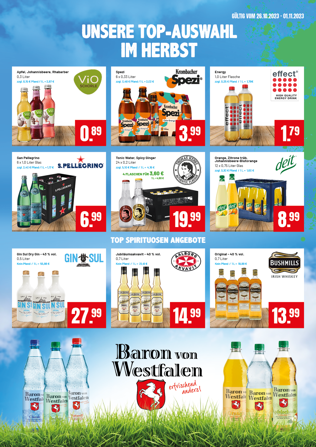 Außerdem haben wir Sinalco Orange, Zitrone, Cola, Cola-Mix und Vilsa Classic, Medium, Naturell im Angebot.
