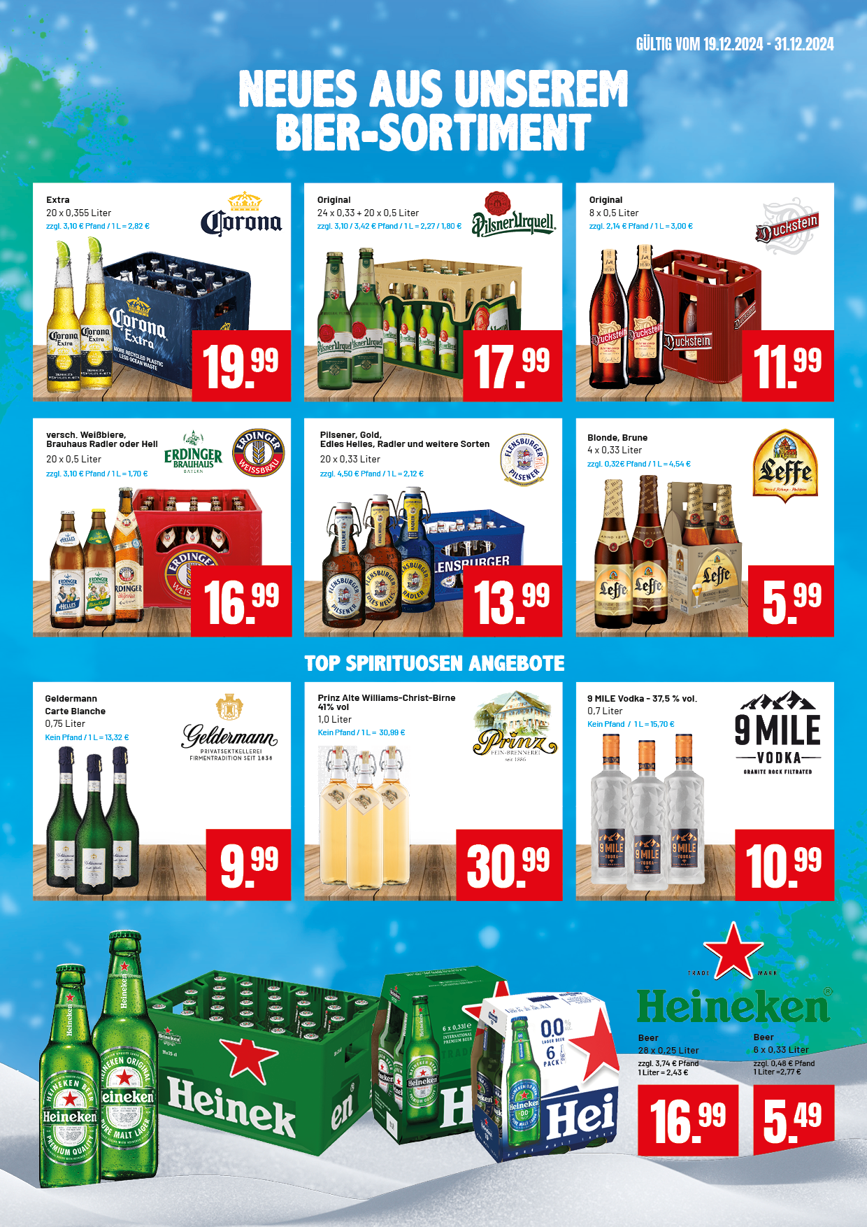 18. Dezember 202411. Dezember 2024Getränke Langkamp Langkamp Angebot vom 19.12.-31.12.2024 Diese Woche haben wir u.a. folgende Produkte im Angebot: Veltins alle Sorten 11,99 € Coca-Cola, Fanta, Sprite alle Sorten 12 x 1,00 Ltr. 10,99 € Bad Meinberger 12 x 0,75 Glas Teilen mit: Klicke, um auf X zu teilen (Wird in neuem Fenster geöffnet) X Klick, um auf Facebook zu teilen (Wird in neuem Fenster geöffnet) Facebook Gefällt mir Wird geladen …