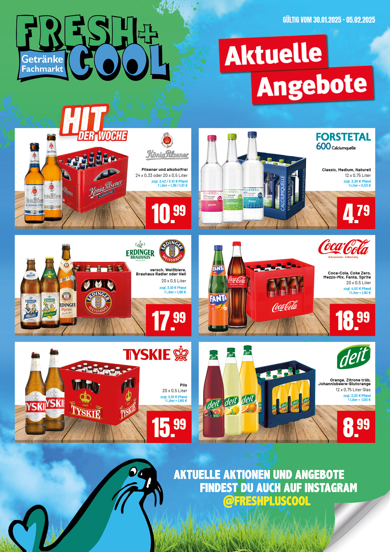 Diese Woche haben wir u.a. König Pilsener, Forstetal Mineralwasser und Coca-Cola, Fanta, Sprite 20 x 0,5 Ltr. im Angebot.
